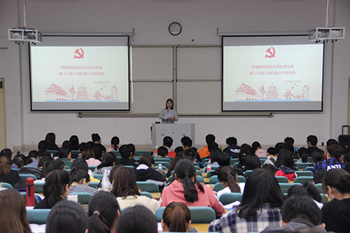 为强化入党积极分子对党的政治理论的学习,11月1日,社会学系于第一教学楼119室举行第十六期入党积极分子培训第二讲。学生党支部书记高鹏出席会议,第十六期全体入党积极分子到场参与。