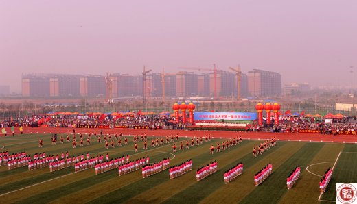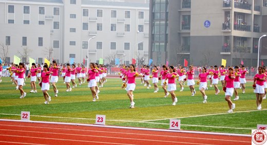 在团体操表演中,行云流水般的千人太极拳表演,充满青春活力的大众健美操和体育舞蹈表演,精彩的竞技健美操、竞技武术和舞龙表演,不仅展现了我校学生团结向上、朝气蓬勃的精神风貌,更把整个开幕式的气氛推向高潮。
