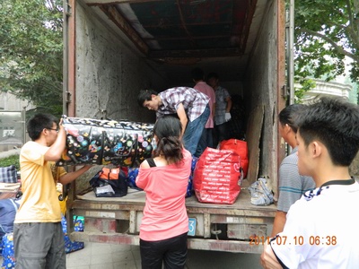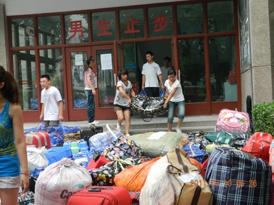 7月10日早上5点,社会学系学生搬迁工作开始。此次搬迁在文北校区老招待所、九号楼前和小西区三个地点同时进行,其中老招待所的学生行李首先搬至九号楼前,然后统一搬运。上午10点10分,我系文北校区学生行李搬运工作圆满完成。同时我系09级男生于早晨6点乘坐校车前往东区做接运行李的准备工作。此次搬迁工作在系领导的统一领导下,全系学生积极响应,搬迁有条不紊的进行。同学们顶着炎炎夏日搬运行李物品十分辛苦,但是为了顺利完成校区搬迁工作,同学们互帮互助,有效保障了搬迁工作的顺利进行。截至发稿时,我系在东区的搬迁工作仍在进行中。