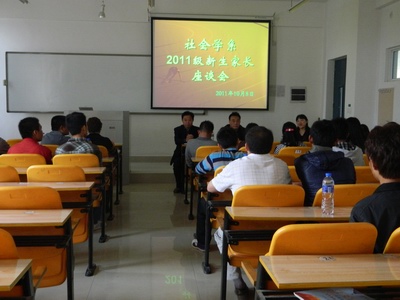 2011年10月8日下午三点,我系在教2—307召开2011级新生家长座谈会。会议由我系办公室主任周柱堂主持,党总支书记王书堂、系主任王金山及社会工作教研室主任徐婕与会,部分报到的2011级新生家长及学生参加。