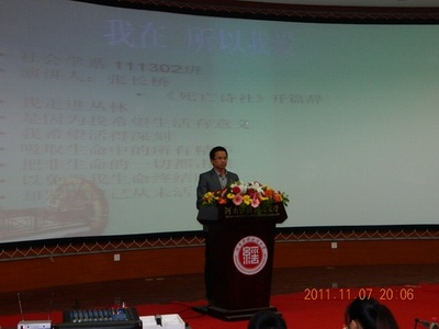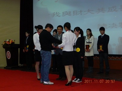 11月7日晚上19:00—21:00,我系11级学生张长桥在“我与财大共成长”演讲比赛总决赛中获得二等奖,在全校师生面前展现了我系新生的风采。
