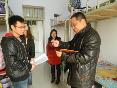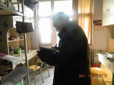 12月8日上午9点,我系党总支副书记刘英杰一行到各个宿舍突击检查,旨在借创建文明宿舍的的契机,进一步了解我系宿舍真实情况,团总支副书记王亚琼、学生会主席杜阳、宣传部部长樊冰冰陪同。