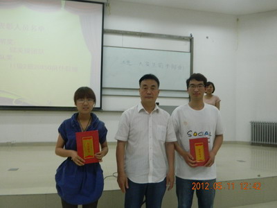 2012年5月11日中午12:10,我系在教2-219举行运动会总结表彰大会。会议由辅导员闫方方主持。我系党总支书记王书堂,系主任王金山,党总支副书记刘英杰,系副主任周林霞与会,社会学系全体学生参加。