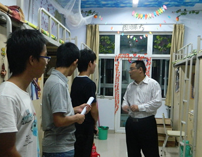 首先,对新生宿舍进行逐一检查。鉴于新生入学时间较短,对周围的环境略感陌生,刘书记多次强调安全的重要性,树立学校、路途和假期三为一体的安全意识,字里行间包含着我系老师对同学安全问题和切身利益的关注。