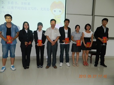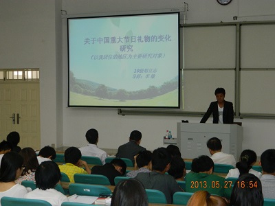 此次学术沙龙报告会上我系七位同学分别展示了他们的研究成果。其中12级杜聪颖,11级刘梅和阎钰翔,与同学们分享了他们入选省级“挑战杯”优秀作品,广泛的调研,严谨的分析,创新的思维展现出他们对实践性学习的重视。10级胡立志和陈光伟同学在报告中重点讲解了我系特色之一“学年论文”的选题和论文撰写思路。09级贺娜和尚晓燕同学在报告中立足自己的毕业论文,强调理论学习不仅要注重学科之间的交叉学习而且要有自己的思考角度,并与大家分享了大学四年的心路历程,鼓励大家注重平时积累,积极参与实践,厚积薄发,走向成功。最后,王莹老师做总结点评,她分析了每位同学的研究特色,在肯定其研究结果的同时也提出了改进意见,希望同学们在未来的学习中立足自身,不断提高专业素养。