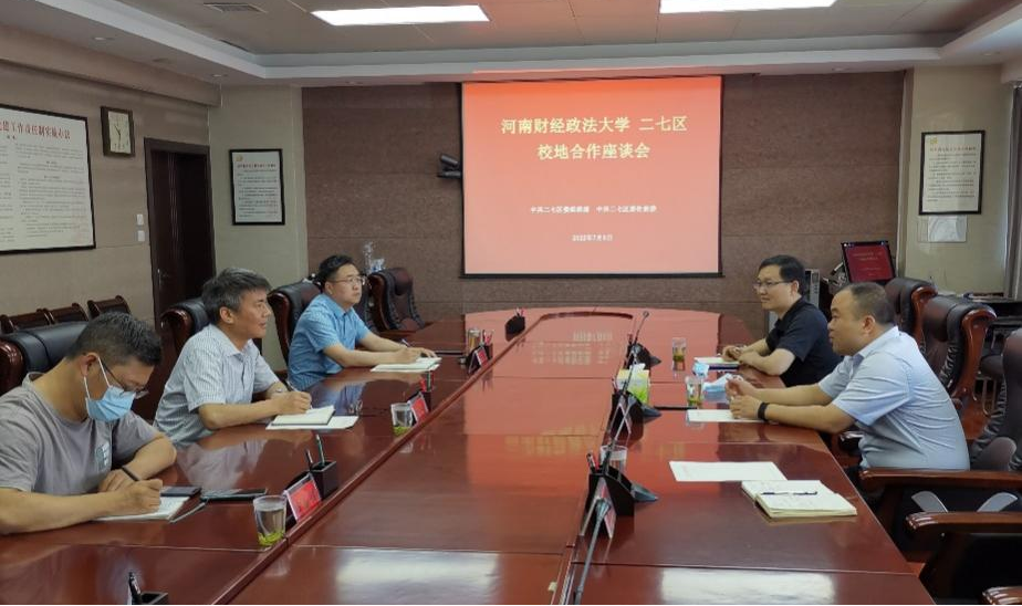 为进一步推进学院特色化、融合式、开放性发展,7月8日上午,永利官网院长田训龙、副院长王莹、社会工作教研室主任袁校卫等一行赴郑州市二七区城乡社会治理委员会考察交流,并就深化校地合作进行座谈。