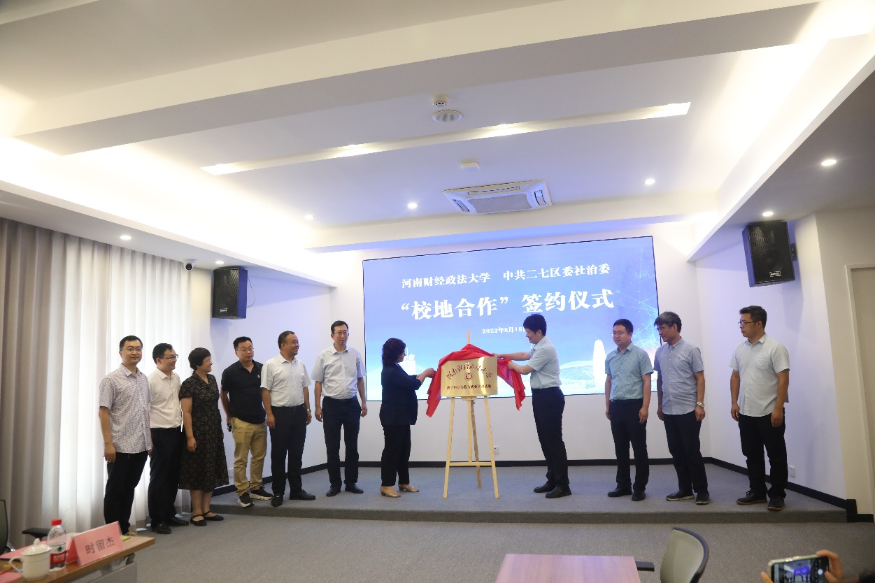 8月18日,我校永利集团3044官网欢迎您与郑州市二七区社会治理委员会校地合作签约暨“永利集团3044官网欢迎您教学科研实践与就业实习基地”揭牌仪式在郑州市二七区举行。副校长薛玉莲和二七区委常委、组织部长、社治委主任蒋明伦出席仪式,永利集团3044官网欢迎您相关负责人参加活动。
